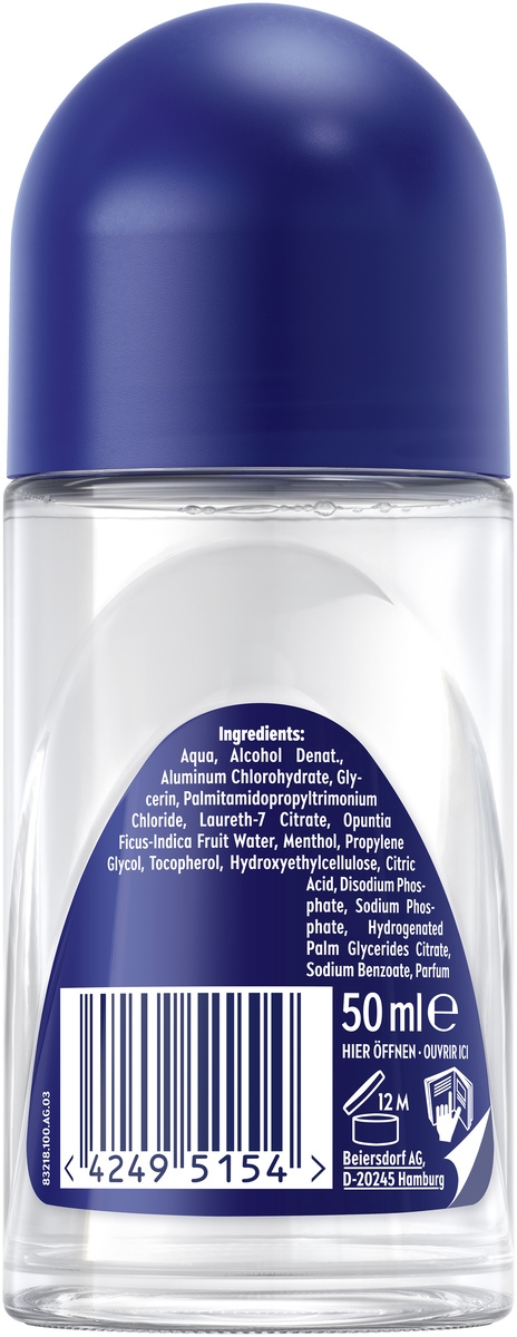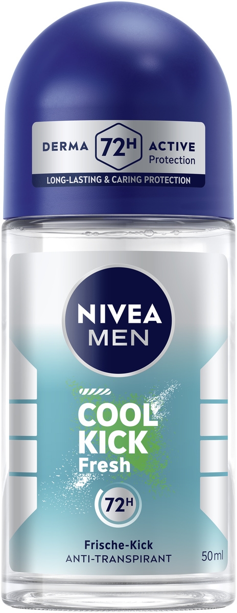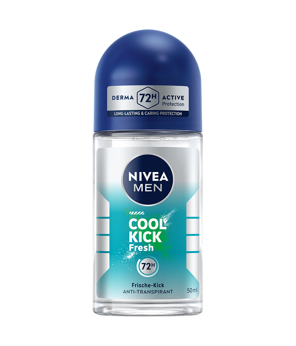 Der NIVEA MEN Cool Kick Fresh Anti-Transpirant Roll-On bietet einen Kick aus kraftvoller Frische mit Kaktuswasser – wie eine frische Dusche an einem heißen Tag. Das Deodorant bietet 72 Stunden Anti-Transpirant-Schutz und pflegt dabei die Haut unter den Achseln. Die handliche Größe des Roll-Ons ist ideal für unterwegs. Die Formeln sind dermatologisch auf Hautverträglichkeit getestet und enthalten keinen Ethylalkohol. Unsere Antitranspirantien bieten Derma 72h Aktiv-Schutz: Sie arbeiten mit der Haut für zuverlässige, starke Wirksamkeit gegen Schweiß und Geruch und sind sanft zur Haut. NIVEA ist in über 160 Ländern präsent und gehört mit mehr als 140 Jahren Erfahrung zu den vertrauenswürdigsten Hautpflegemarken der Welt. Als Marktführer in der globalen Hautpflegebranche arbeiten unsere Forscher daran, hochwertige, dermatologisch geprüfte Produkte für verschiedene Hauttypen anzubieten.