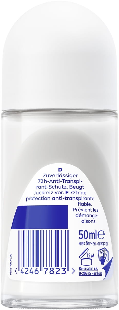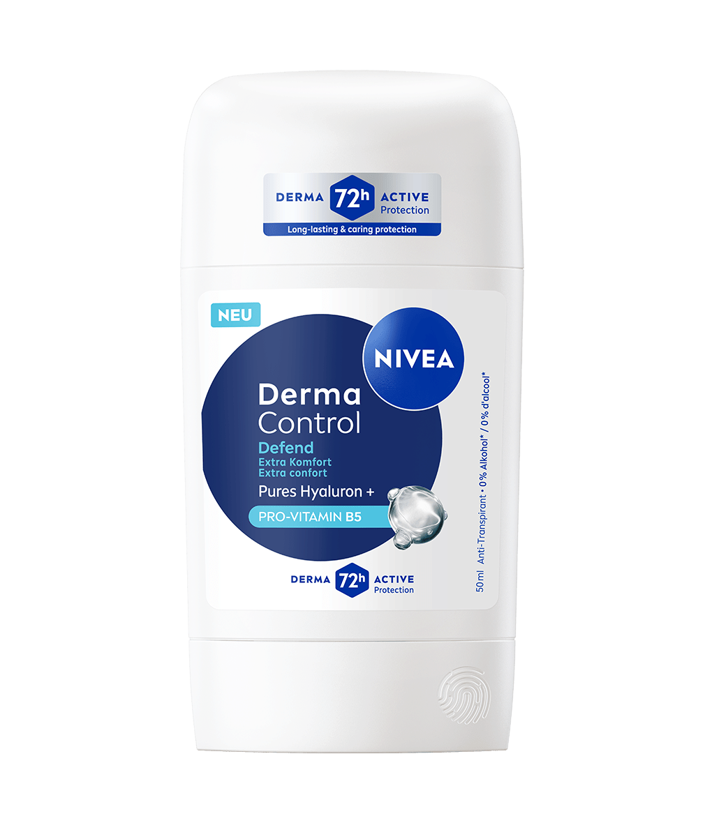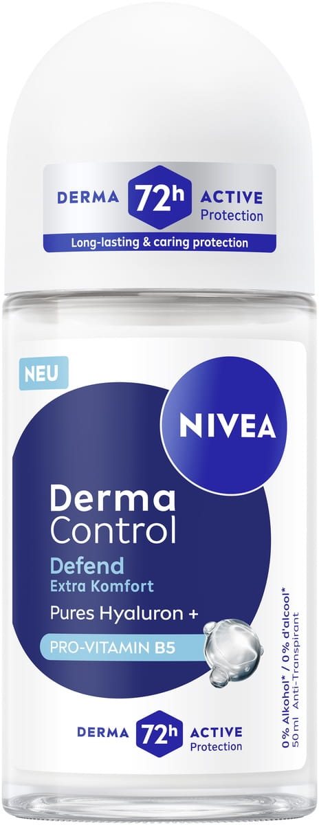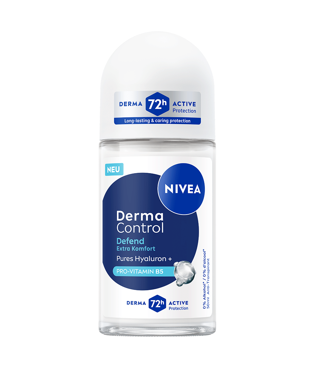 NIVEA Derma Control Defend Deo Roll-On mit purem Hyaluron und Pro-Vitamin B5 schützt die Haut vor Rasur-Irritationen und bietet 72h Schweiß- und Geruchsschutz für ein gesundes, weiches Hautgefühl.