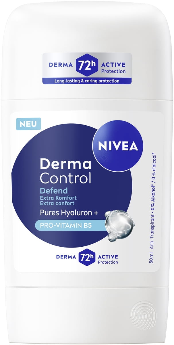 Die NIVEA Derma Control Defend-Serie wirkt gegen Juckreiz und sorgt gleichzeitig für zusätzlichen Komfort unter den Achseln. Die Formel mit reinem Hyaluron und Pro-Vitamin B5 schützt Ihre Haut wirksam vor Irritationen nach der Rasur, reduziert Reibung durch Kleidung und pflegt gleichzeitig die Haut unter den Achseln.