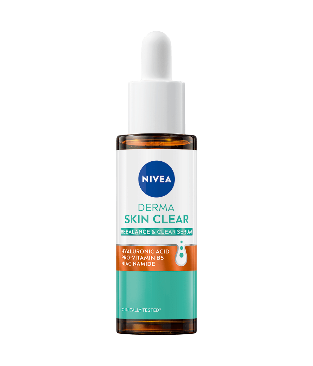 Das NIVEA Derma Skin Clear Rebalance & Clear Serum wurde speziell für zu Unreinheiten neigende Haut entwickelt. Mit Hyaluronsäure, Pro-Vitamin B5 und Niacinamid beruhigt es die Haut, spendet Feuchtigkeit und reduziert Hautunreinheiten. Für eine gestärkte Hautbarriere und ein sichtbar verbessertes Hautbild in 7 Tagen: NIVEA Derma Skin Clear Rebalance & Clear Serum