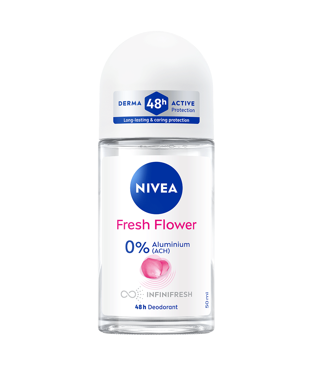 NIVEA Fresh Flower Roll-On mit antibakterieller INFINIFRESH Formel bietet 48h Deodorant-Schutz, der Ihre Haut pflegt. Frisches Gefühl den ganzen Tag mit blumigem Duft und langanhaltender Frische.
