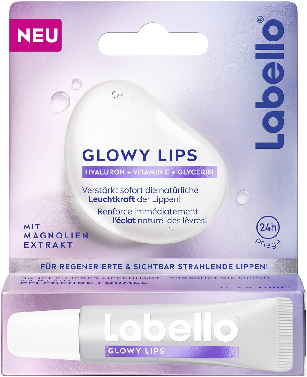 Labello® GLOWY LIPS verstärkt sofort den natürlichen Glanz deiner Lippen. Für regenerierte & sichtbar strahlende Lippen mit Magnolien-Extrakt.