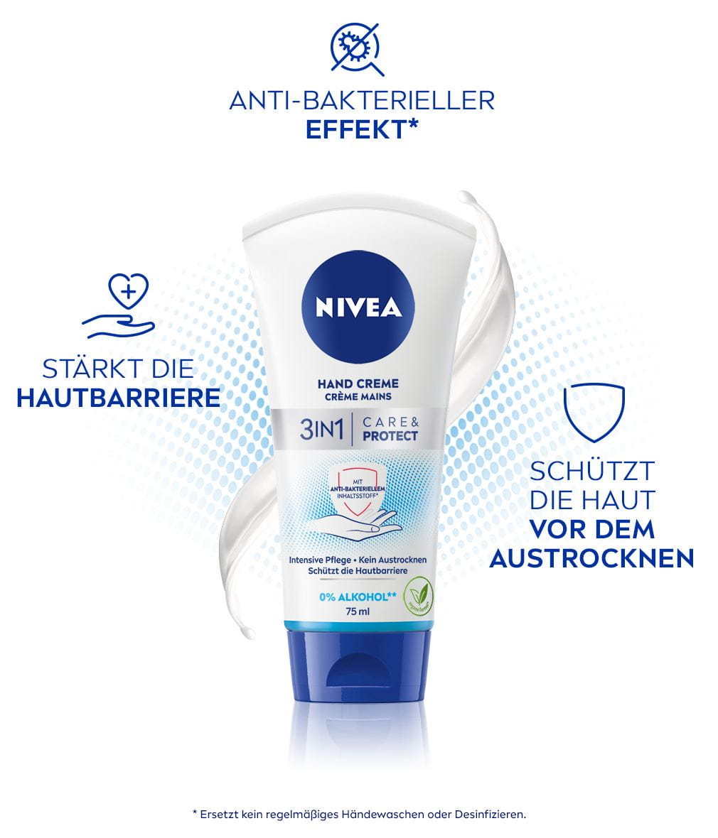 Lindert sofort unangenehme Spannungsgefühle und schützt dank Dexpanthenol langanhaltend: NIVEA 3in1 Repair Hand Creme