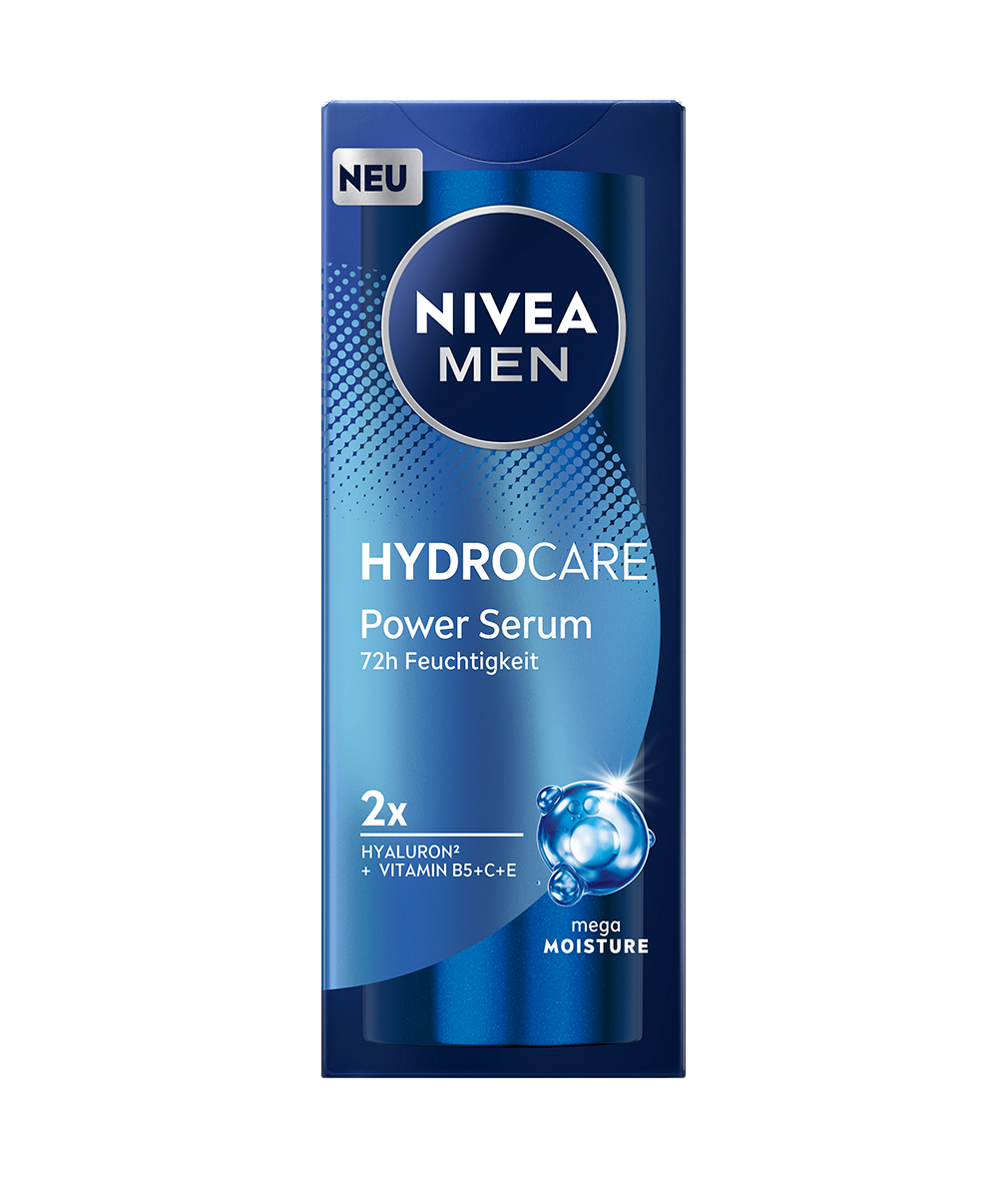 NIVEA MEN HYDROCARE Power Serum spendet intensiv Feuchtigkeit und versorgt die Haut zuverlässig mit 72 h Feuchtigkeit nach nur einer Anwendung (1). Die leichte, erfrischende und schnell einziehende Formel dringt in tiefere Schichten der Epidermis ein und hydratisiert die Haut, ohne zu beschweren. Das Ergebnis ist eine gepflegte, vitale Haut voller Energie, die vor dem Austrocknen geschützt wird. Klinisch bestätigt: +140 % Feuchtigkeit nach einer Anwendung. Die leistungsstarke Pflegeformel mit 2× Hyaluron (2) sowie Vitamin B5, C und E sorgt für ein langanhaltendes Feuchtigkeitsgefühl. 96 % der Männer bestätigen ein spürbar langanhaltendes Feuchtigkeitsgefühl bereits nach der ersten Anwendung (3).