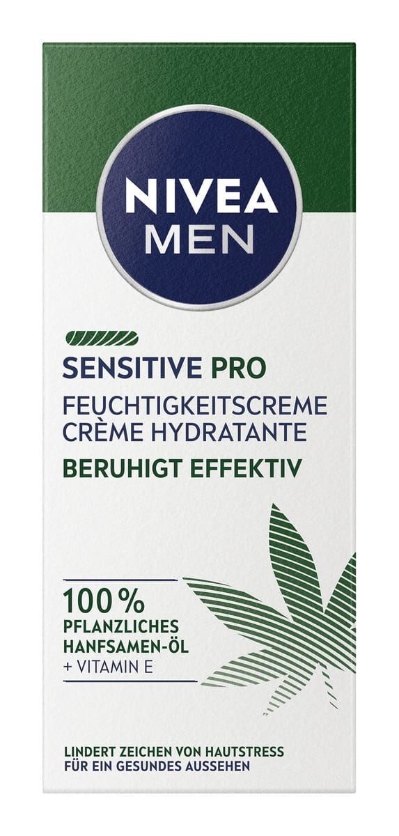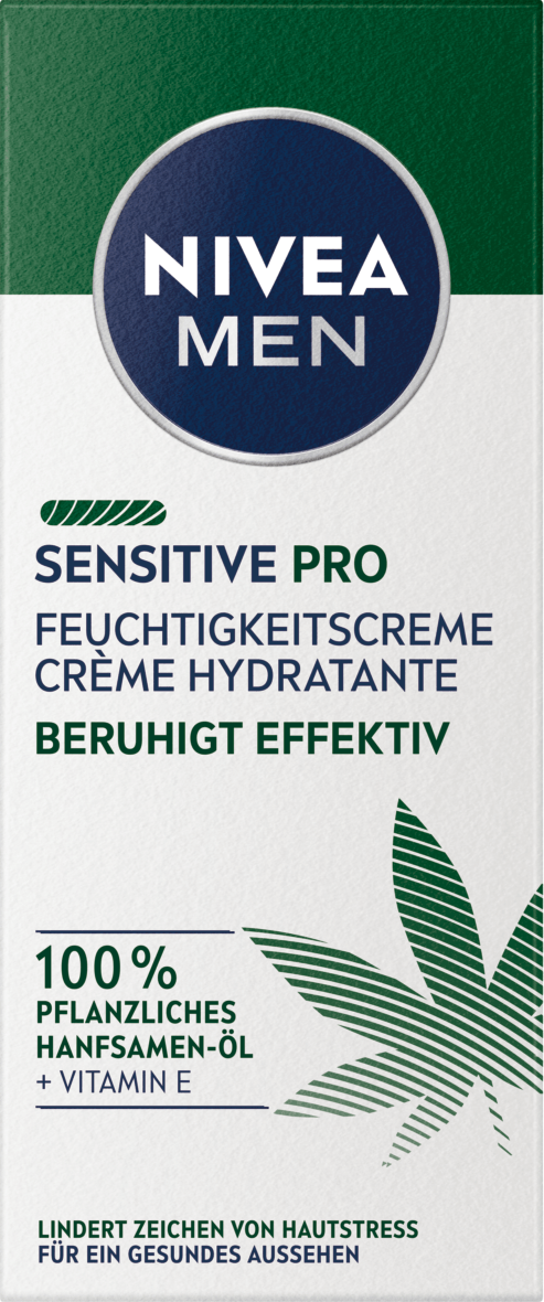 Die neue vegane Feuchtigkeitscreme für empfindliche Haut mit Hanfsamen-Öl & Vitamin E. Beruhigt und pflegt deine Haut effektiv: NIVEA MEN Sensitive Pro Feuchtigkeitscreme.