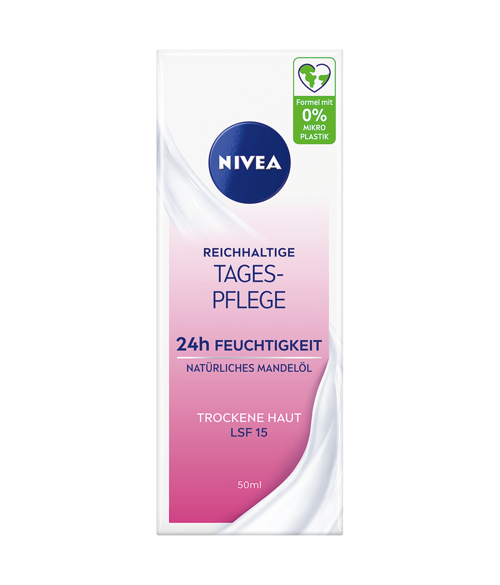 Diese Tagespflege wurde für deine trockene Haut entwickelt. Die Formel mit NIVEA 3-fach Komplex spendet der Haut Feuchtigkeit und schützt sie vor äußeren Einflüssen, 50ml: NIVEA Reichhaltige Tagespflege 24h Feuchtigkeit.