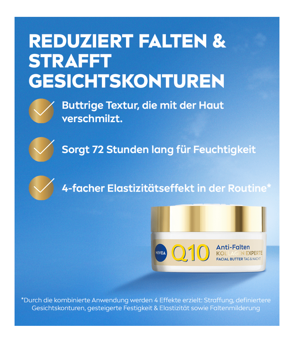 NIVEA Straffende Anti-Cellulite Gel-Creme Q10 beugt den äusseren Anzeichen von Cellulite an Bauch, Oberschenkel und Po vor und mindert sie sichtbar. Für alle Hauttypen geeignet.