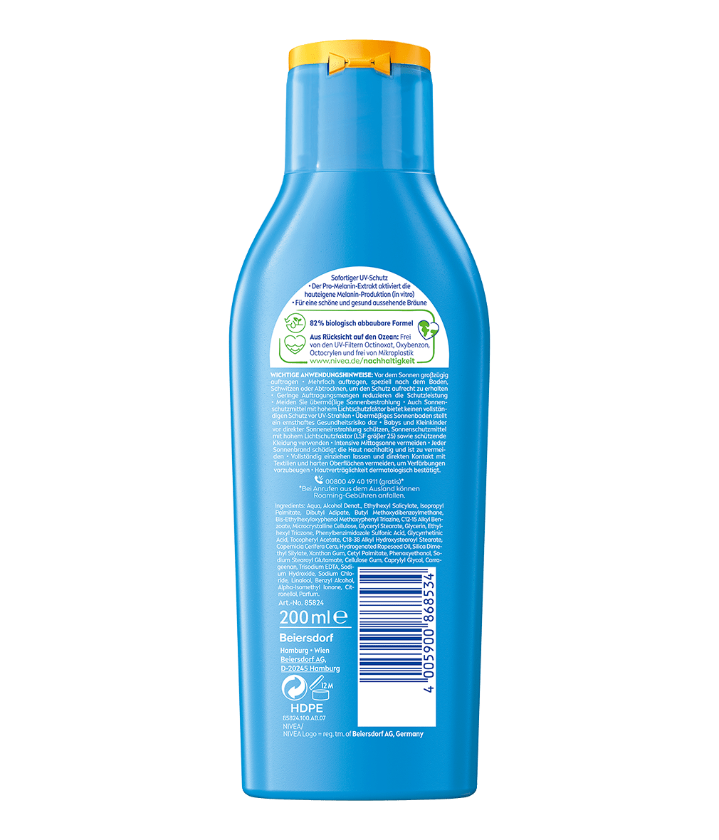 - Die Formel ist bis zu 82 % biologisch abbaubar und ist frei von den UV-Filtern Octocrylen, Octinoxat und Oxybenzon sowie von umweltschädlichem Mikroplastik - aus Rücksicht auf den Ozean