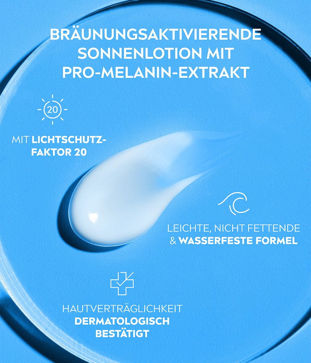 - Der Pro-Melanin-Extrakt aktiviert die hauteigene Melanin-Produktion